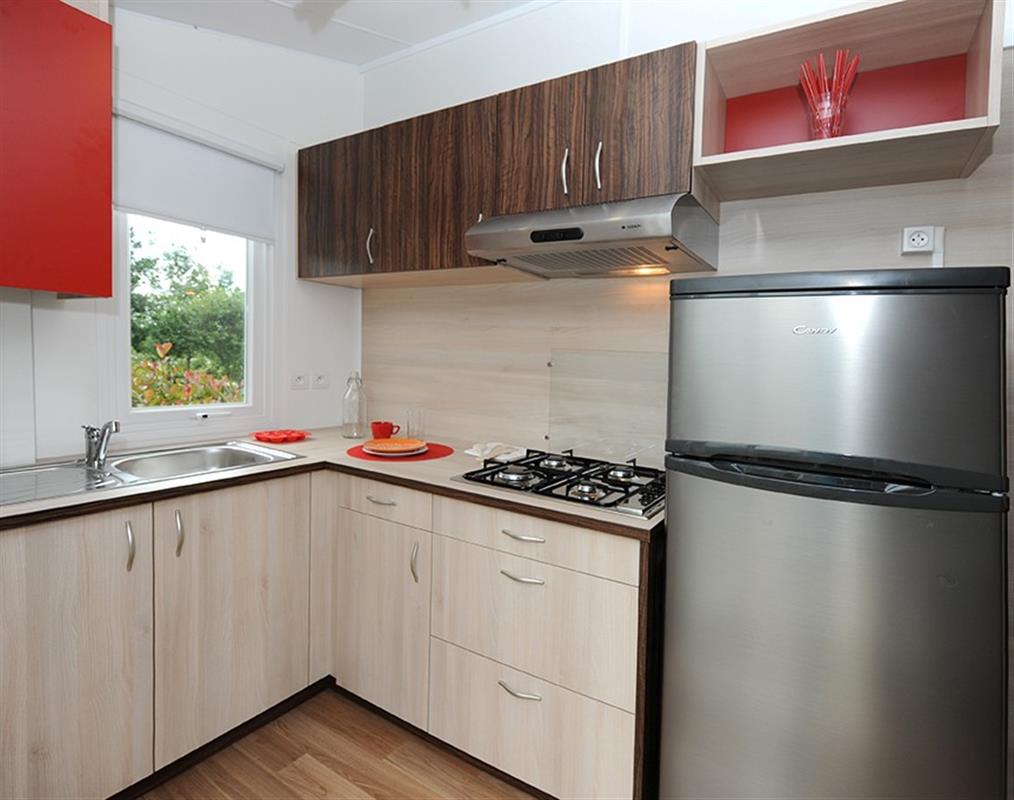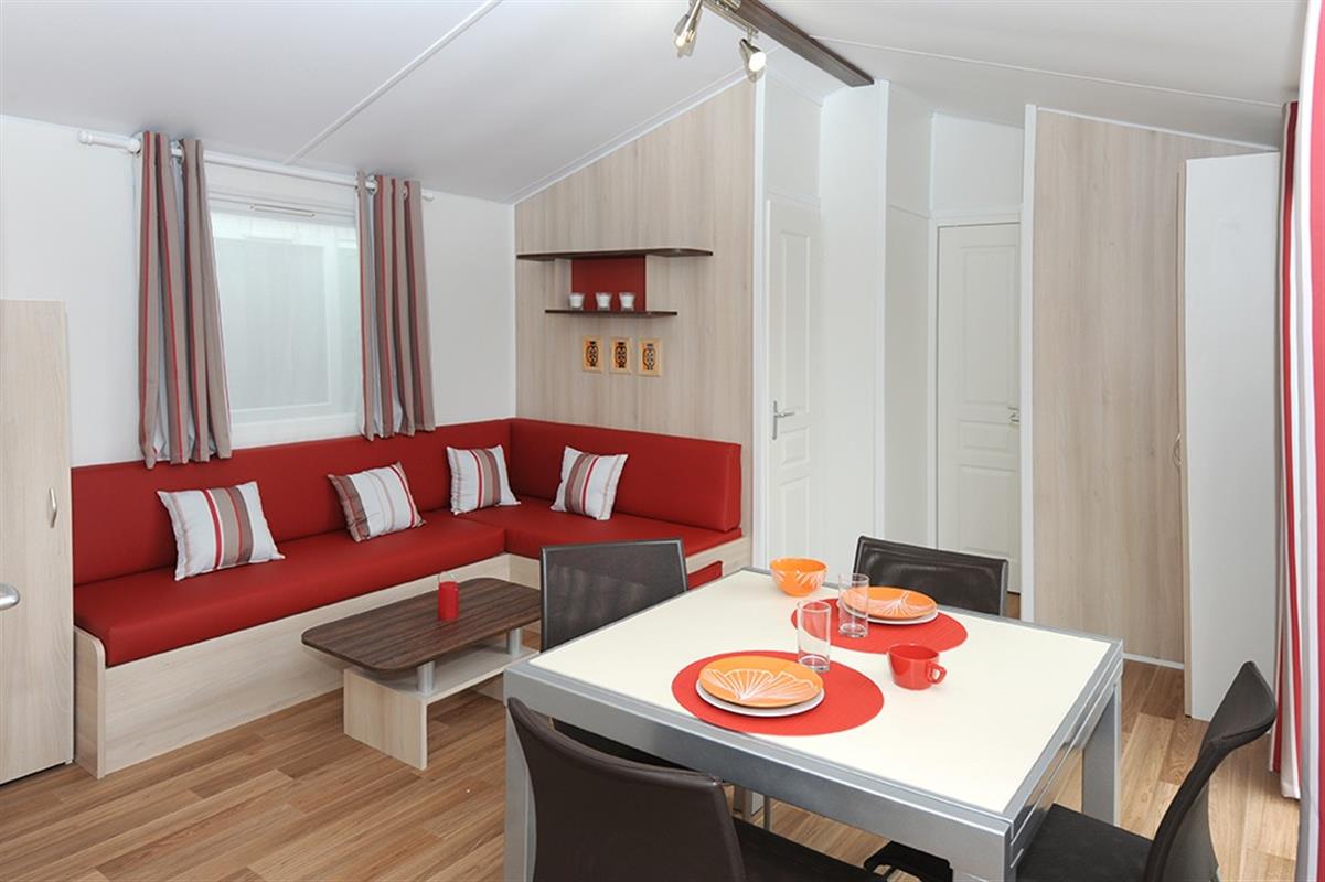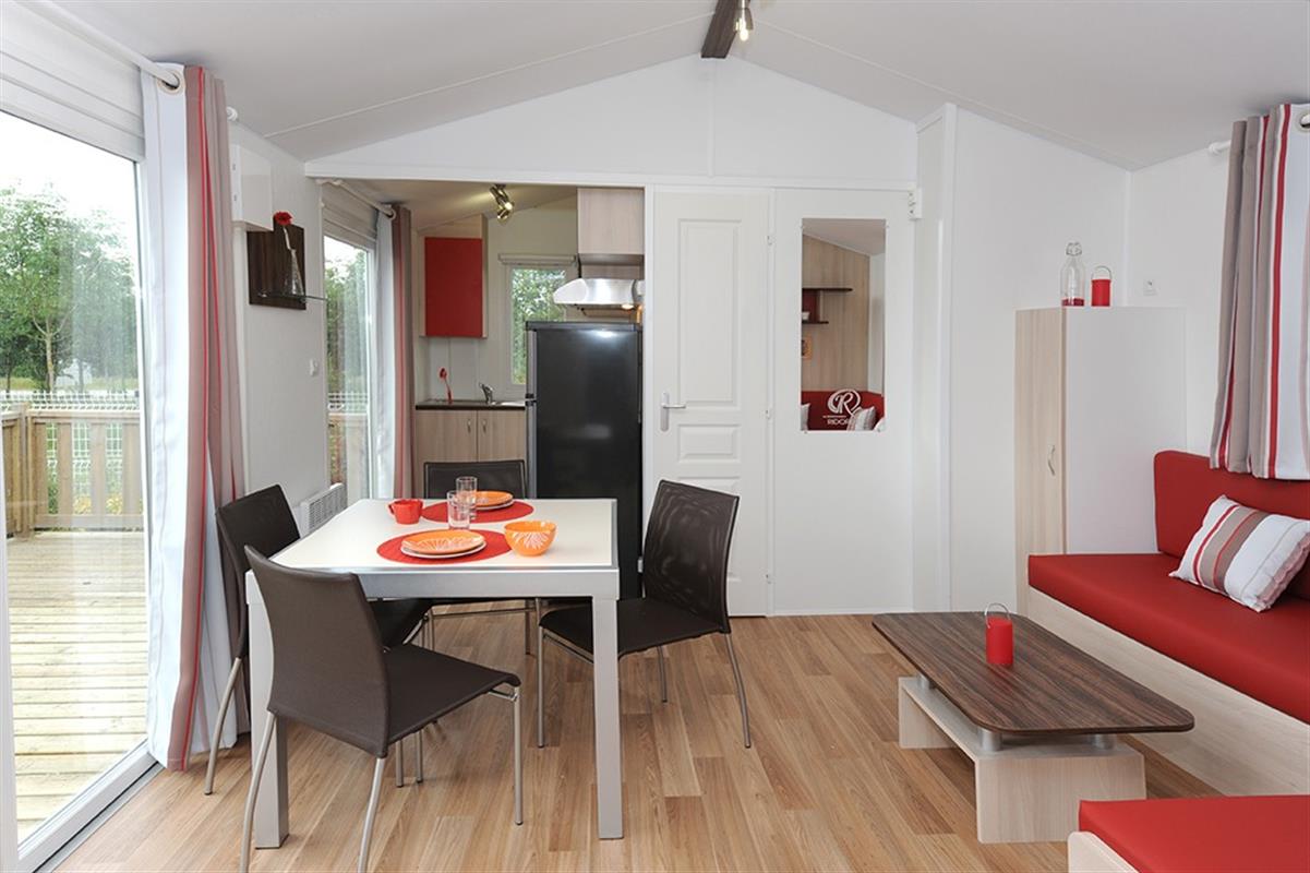 Surface : 32.4 m² – 2 chambres : 1 chambre avec 1 lit double (140) et 1 chambre avec 2 lits simples (80) – 1 séjour avec coin canapé – 1 salle d’eau et 1 wc – 1 terrasse couverte – 1 télévision