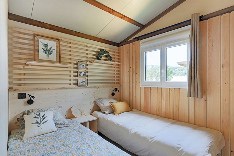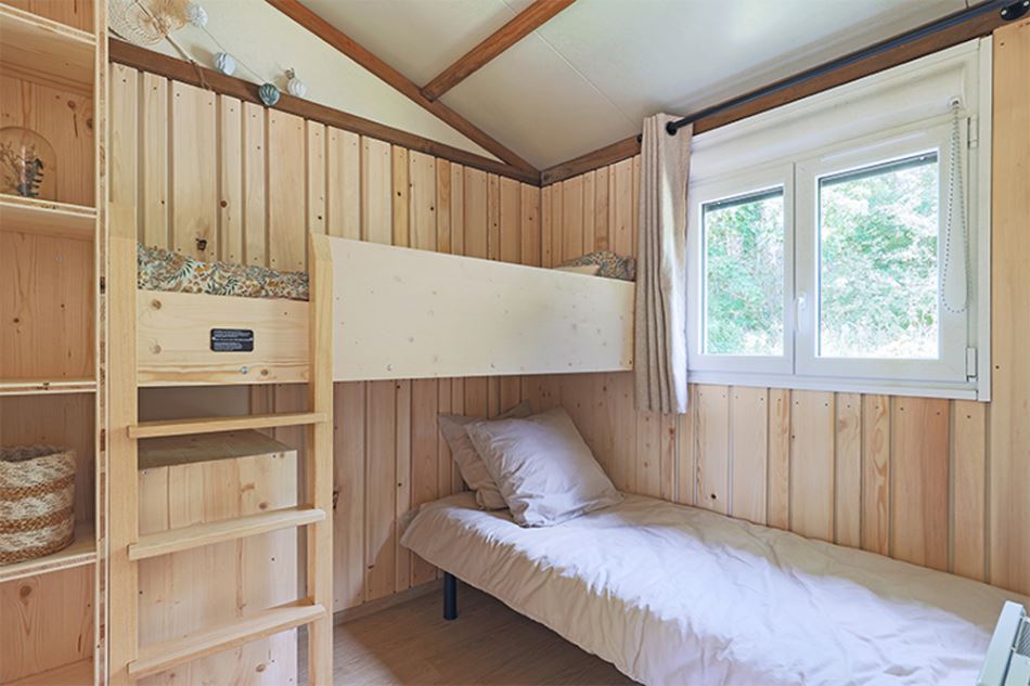 Ce chalet avec ses trois chambres, peut accueillir 6 personnes, une chambre parentale (160X200 cm), une chambre avec 2 couchages côte côte (80 x 200 cm), une chambre avec 2 couchages,dont un lit superposé pour enfants jusqu’à 12 ans