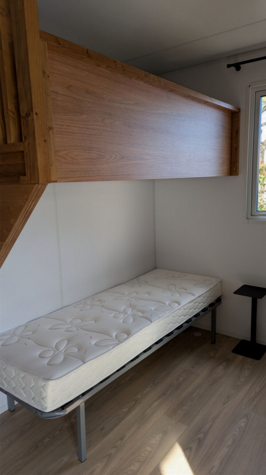 Cet hébergement avec ses deux chambres, peut accueillir 4 personnes, une chambre parentale (140X200 cm), une chambre avec deux couchages (70 x 200 cm) dont un lit superposé jusqu’à 70kg.